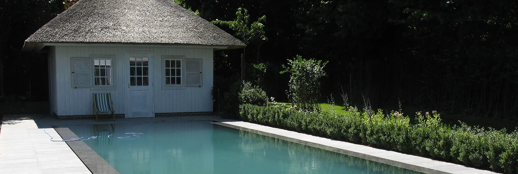 Vous avez besoin d'un local pour l'installation technique de la piscine. Des espaces de rangements ne sont pas superflus. Un douche, une toilette, un bout de terrasse, vous n'avez pas besoin d'une résidence secondaire mais tout de même...